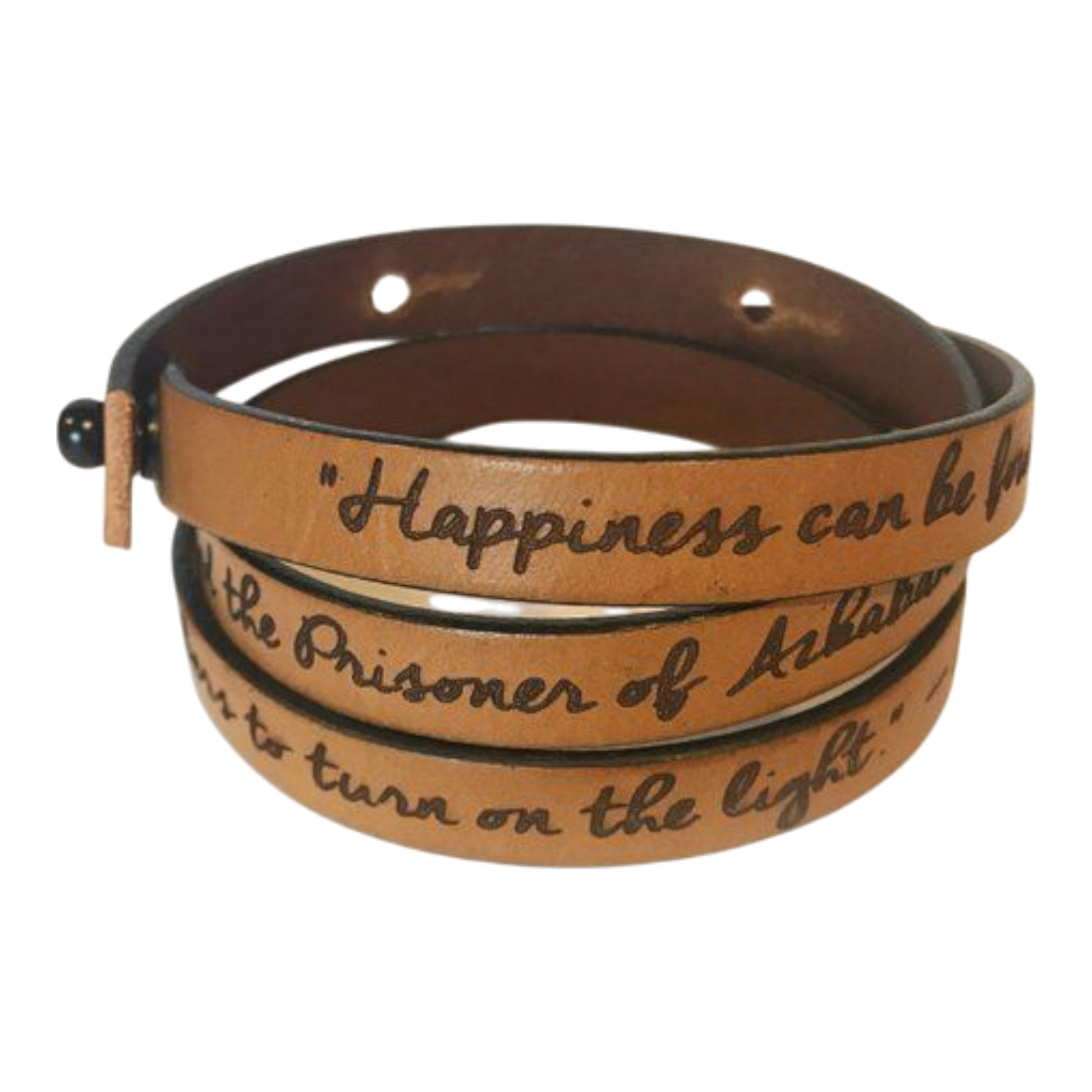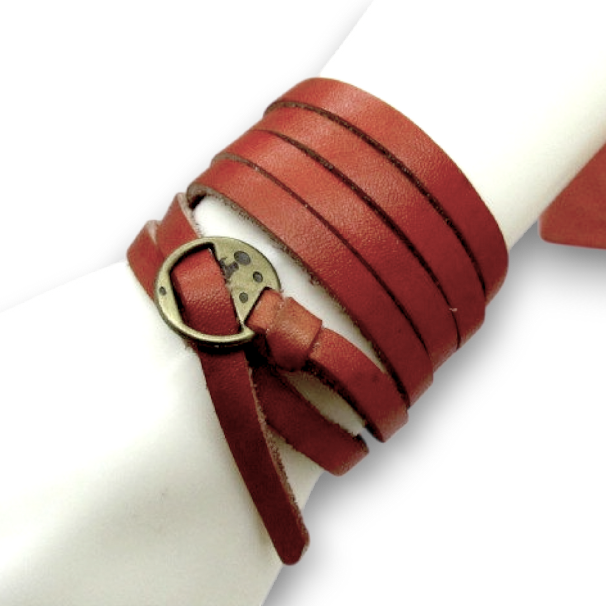 Tää ei oo mikään tylsä tynkä, vaan nahkainen wrap ranneke, joka on ainakin metrin pitkä ja jonka voit kiertää ranteeseen niin monta kertaa kuin haluut. Sun oma teksti, laulun sanat, motto tai vaikka salainen viesti – kaikki käy, eikä tää jää huomaamatta. Nahka on aitoa, kestää kulutusta, patinoituu hienosti ja näyttää ronskilta heti ekasta käyttökerrasta. Sulkee helposti soljella tai niiteillä, ettei karkaa kesken päivän seikkailujen. Värit löytyy väritaulukosta: musta, ruskea, luonnonnahka, tummanruskea ja punainen.