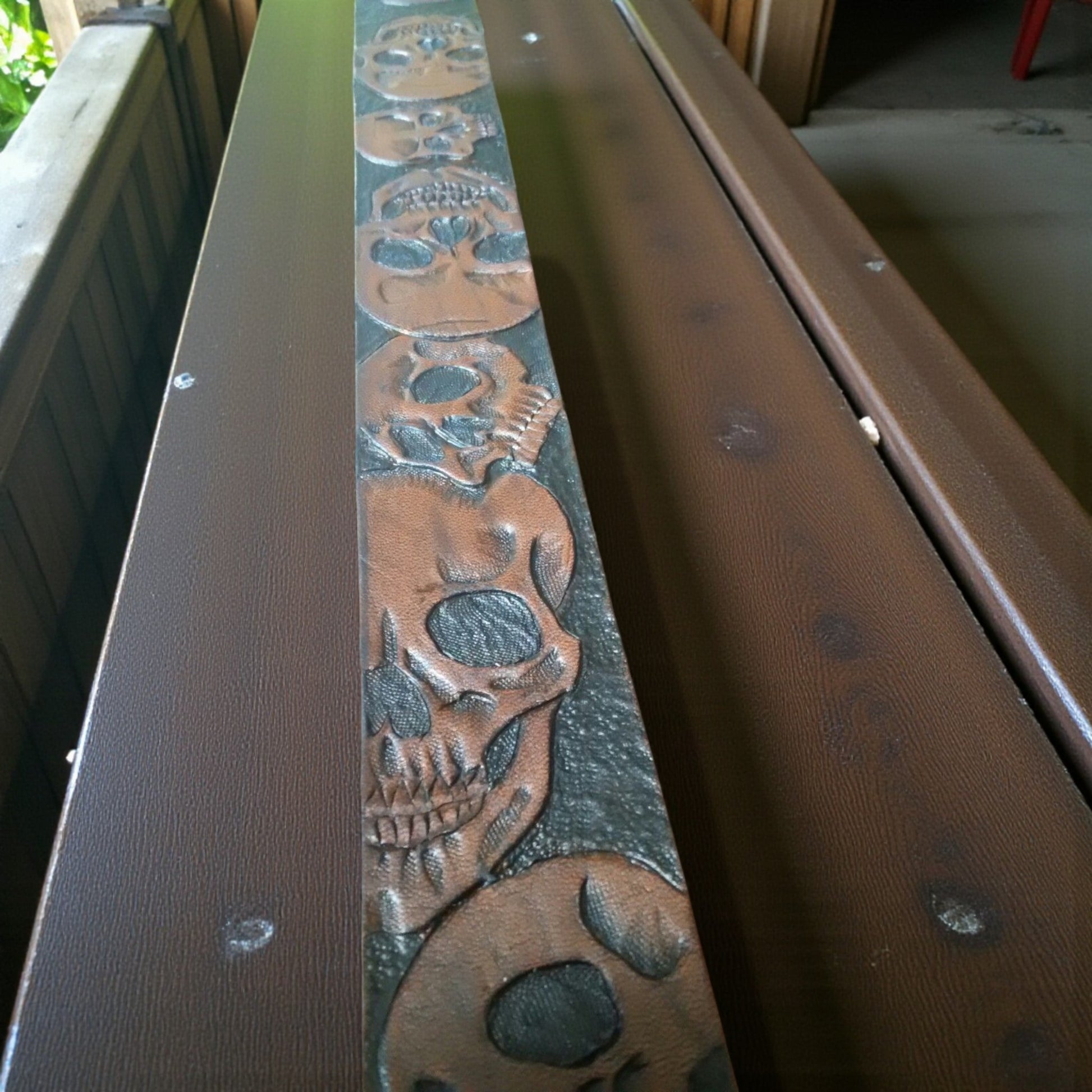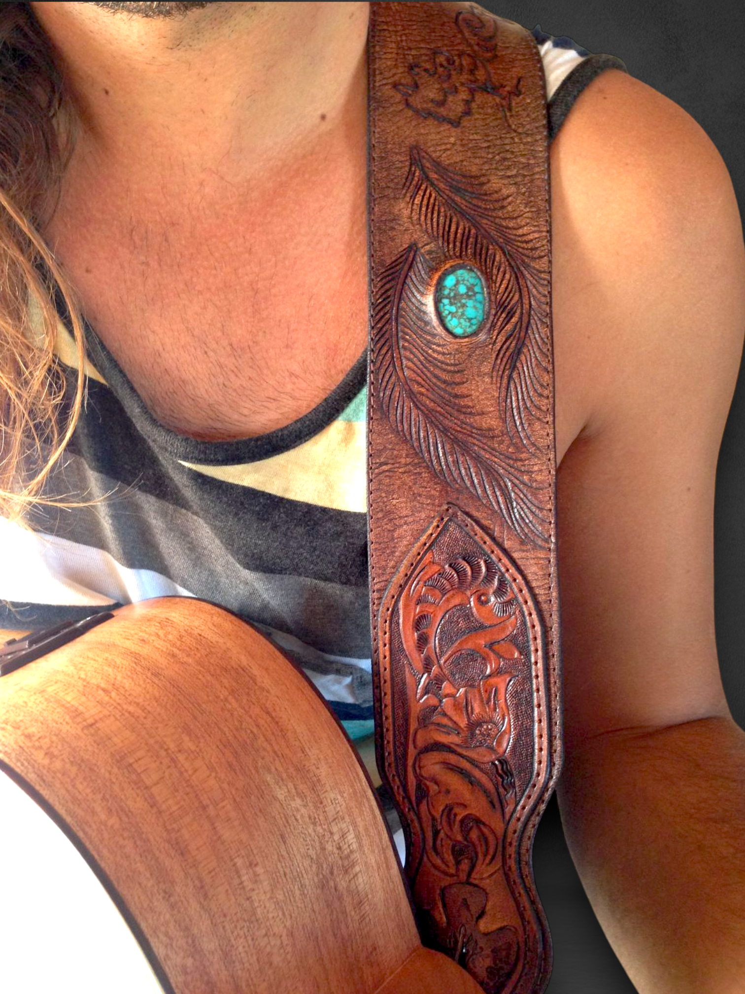 Kuule mää sanon suoraan, tää kitaran remmi ei oo mikään hihhulien kangasnauha vaan oikee nahkaremmi, joka pysyy olalla vaikka soitto ois niin rajua et naapurin koira ulvoo. Tää on tehty sulle, joka et haluu massapaskaa vaan remmin jossa on luonnetta, painoa ja vähän uhkaa. Kuvio voi olla käsin pakotettu, laserkuviolla vedetty tai ihan blanco tyhjä, jos haluut ite sotkea sen historian. Kuvioks käy sulka, keltti, pääkallo, ruusu tai nimikointi, eli sun nimi, bändi tai joku muu teksti mikä kertoo kenelle kitara oikeesti kuuluu.