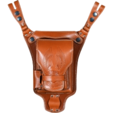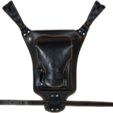 Ledmarin isompi vyölle ja reiteen kiinnitettävä laukku. Reisiremmin voi halutessaan irroittaa laukusta. Lokerot lompakolle, kännykälle ja savukkeille sekä piilolokero. Väri ruskea. Päällä kotka kuviointi.