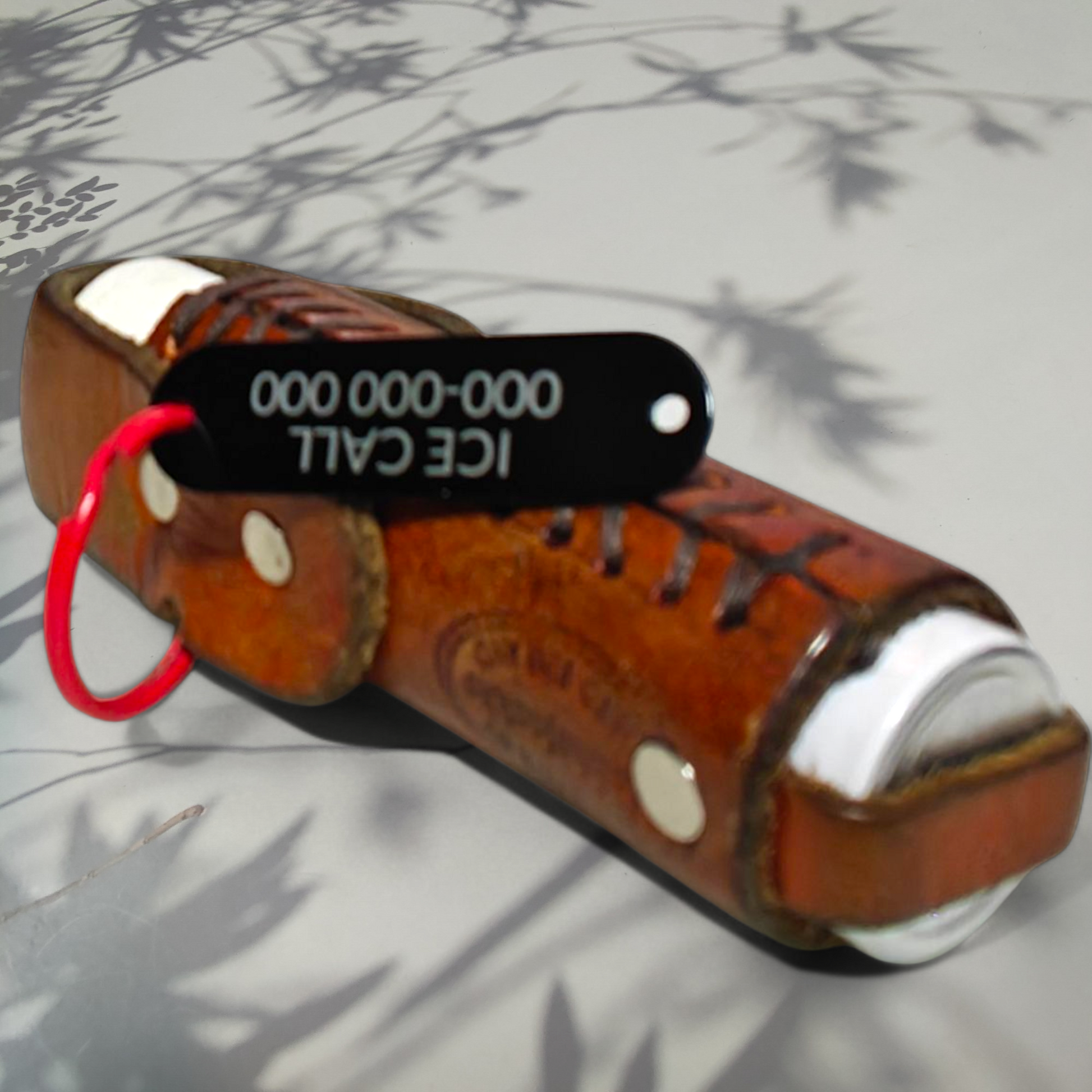 Nii sit viel yks helkutin juttu: tähän saa mukaan laserkaiverretun tagin, johon voi laittaa vaik ice numeron ja toispualel sytämmen kans nimes. Mut sun pitää sitä ihan ite pyytää tommosta,.😝