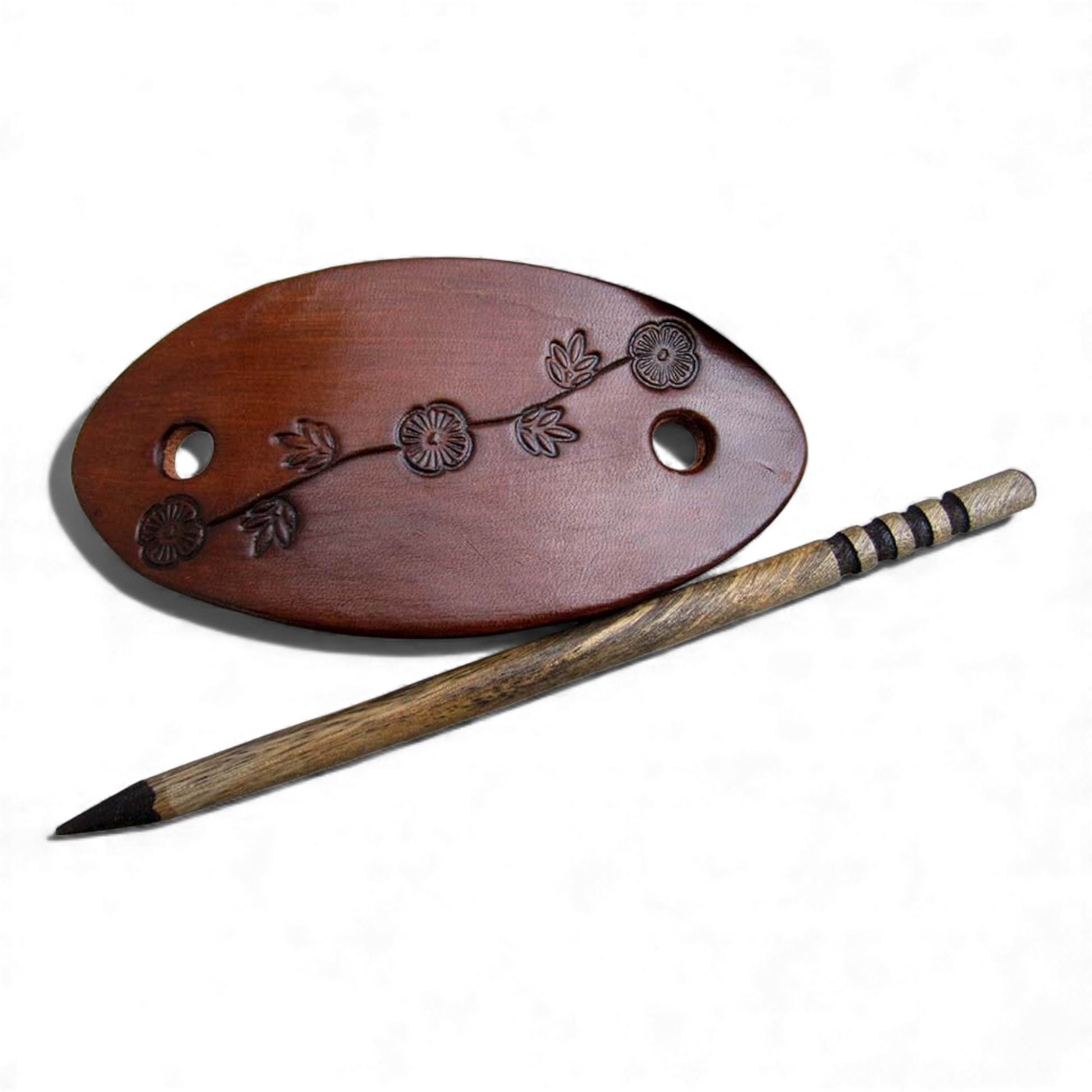 nahkajaakko nahkainen nuttura barrette käsityönä - kerroviestikenttään tilausta tehdessäsi minkä teemaisen kuvioinnin haluat berretteesi.
