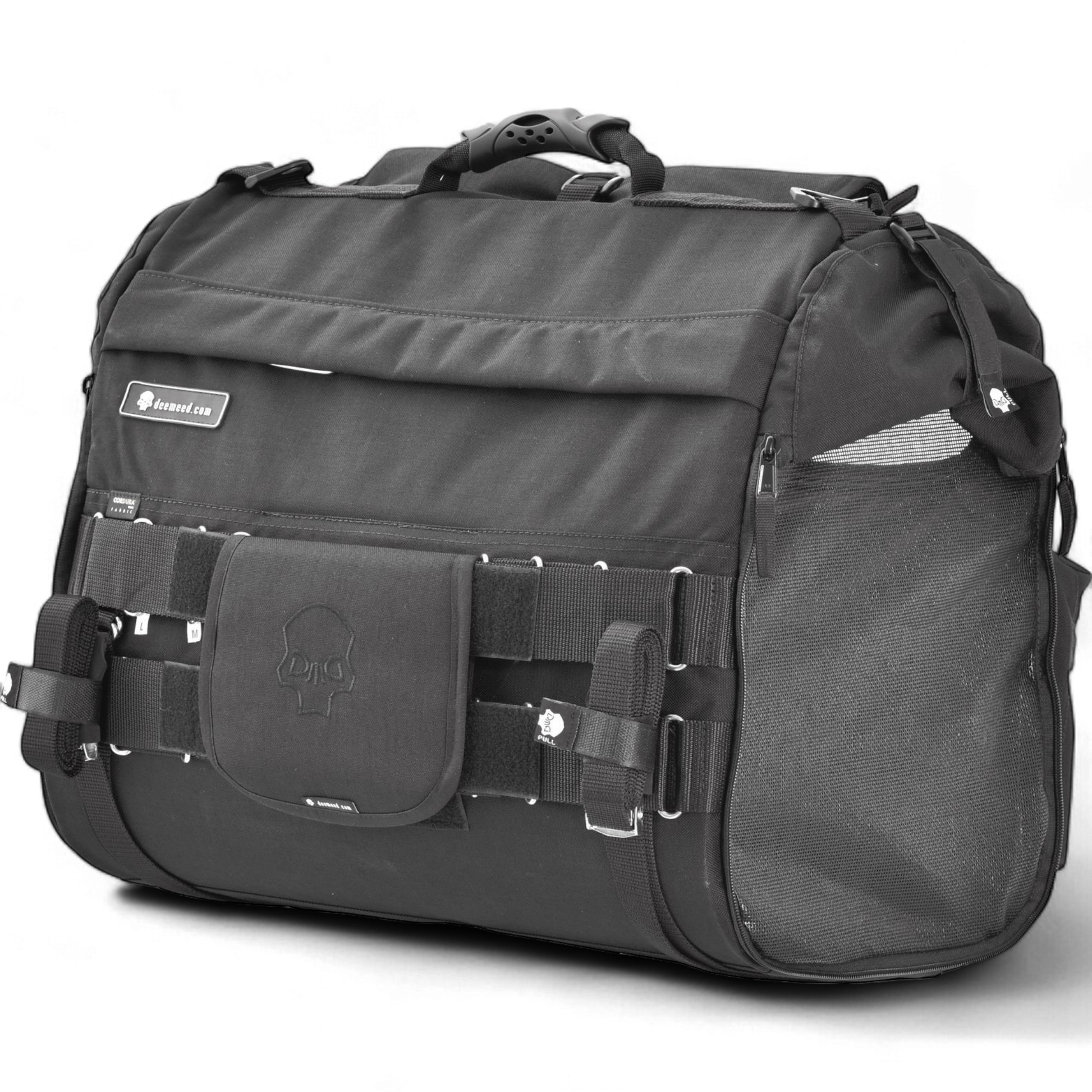Kiinnitys moottoripyörään on yksinkertainen, ja laukku pysyy paikoillaan vaikka reitti ois yhtä mutkaa ja monttua. Sisävuoraus on helposti puhdistettava, ja alusta on koiralle mukava makoilla. Tää laukku sopii myös kahden kaverin kuljetukseen Double-mallilla. Kun lemmikki ei oo kyydissä, voit käyttää laukkua vaikka reissukassina.